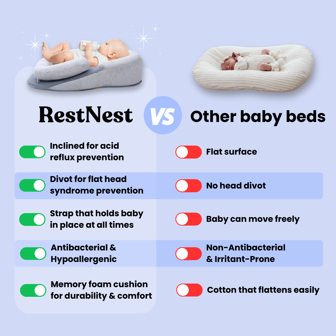 Say goodbye to sleepless nights and hello to peace of mind. The RestNest supports your baby’s comfort, growth, and your family’s rest